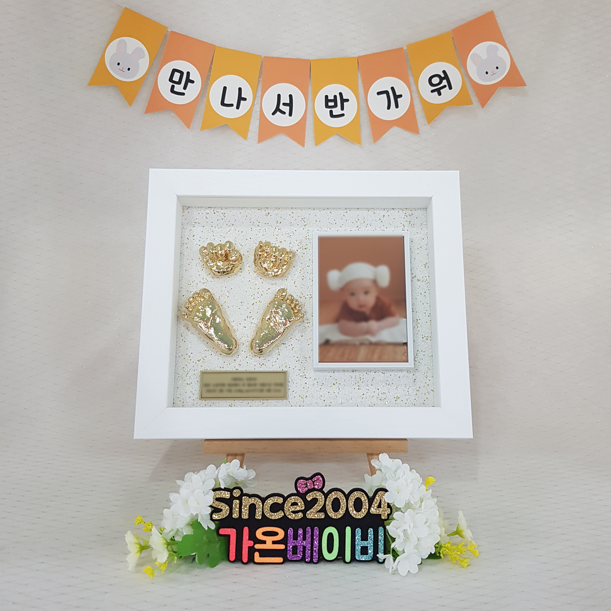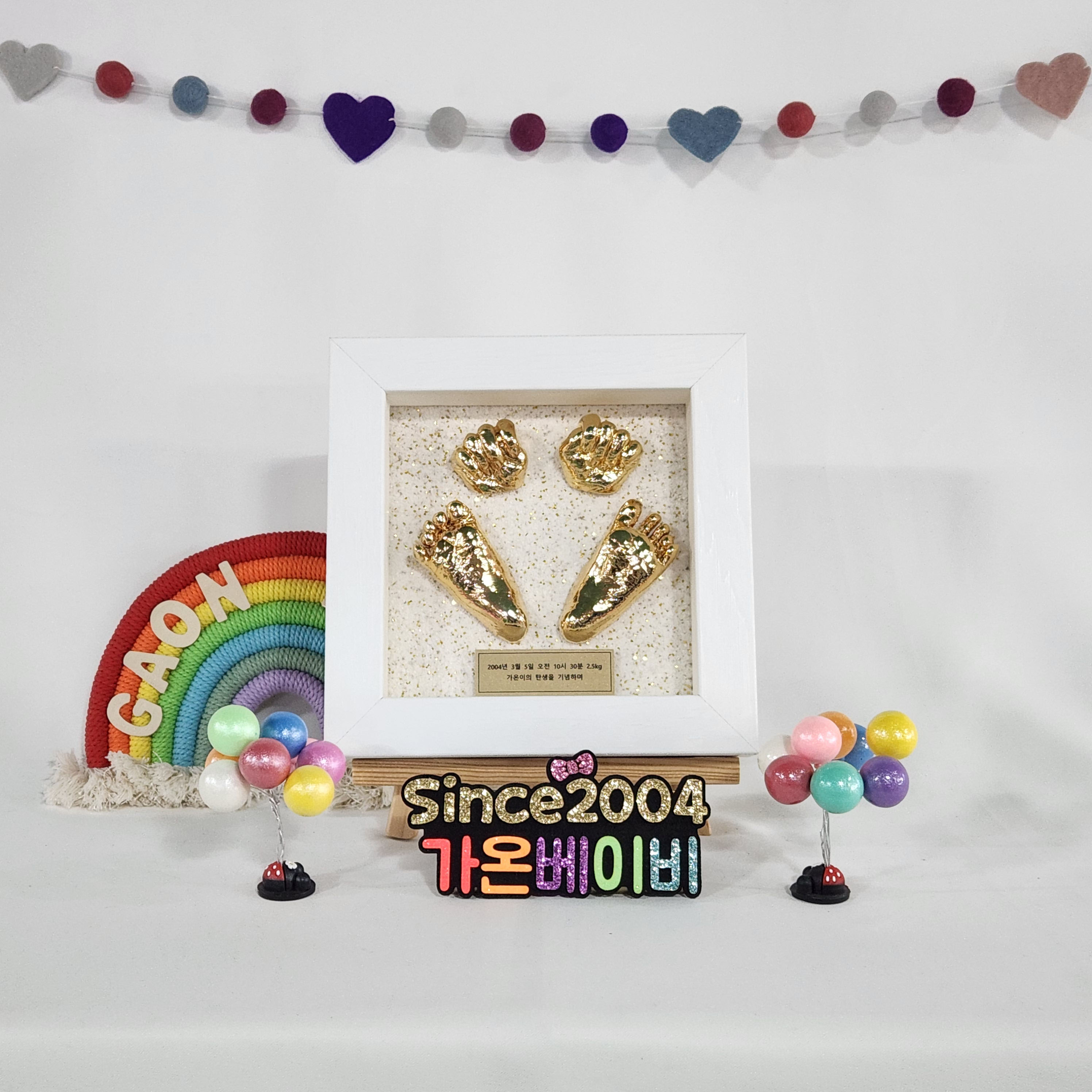 24K도금 손발세트-원목화이트액자